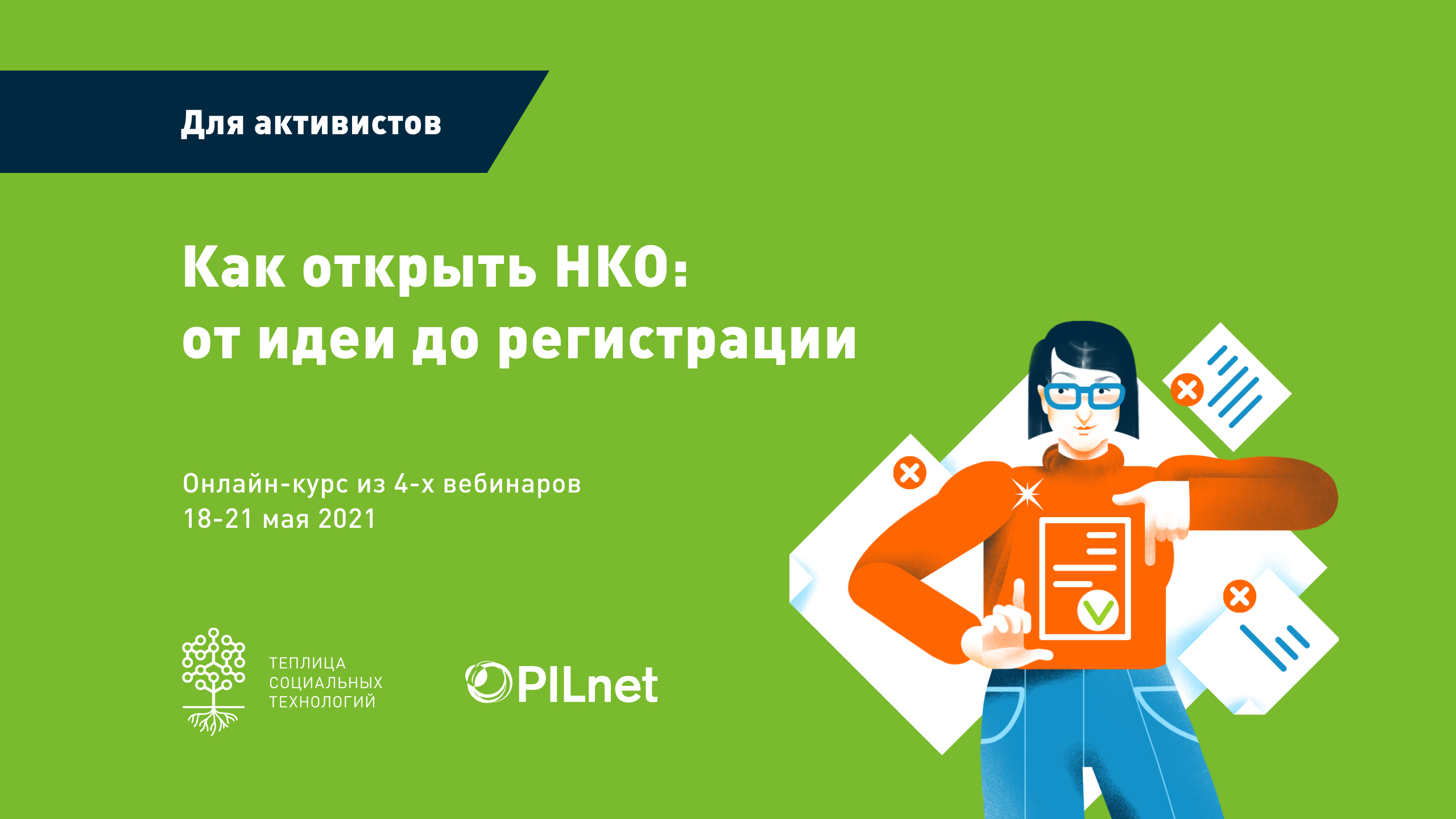 Команда Теплицы социальных технологий и сообщества юристов PILnet приглашают принять участие в онлайн-курсе о том, как открыть некоммерческую организацию. Эксперты подробно расскажут, как выбрать правовую форму, пройти регистрацию и избежать ошибок.