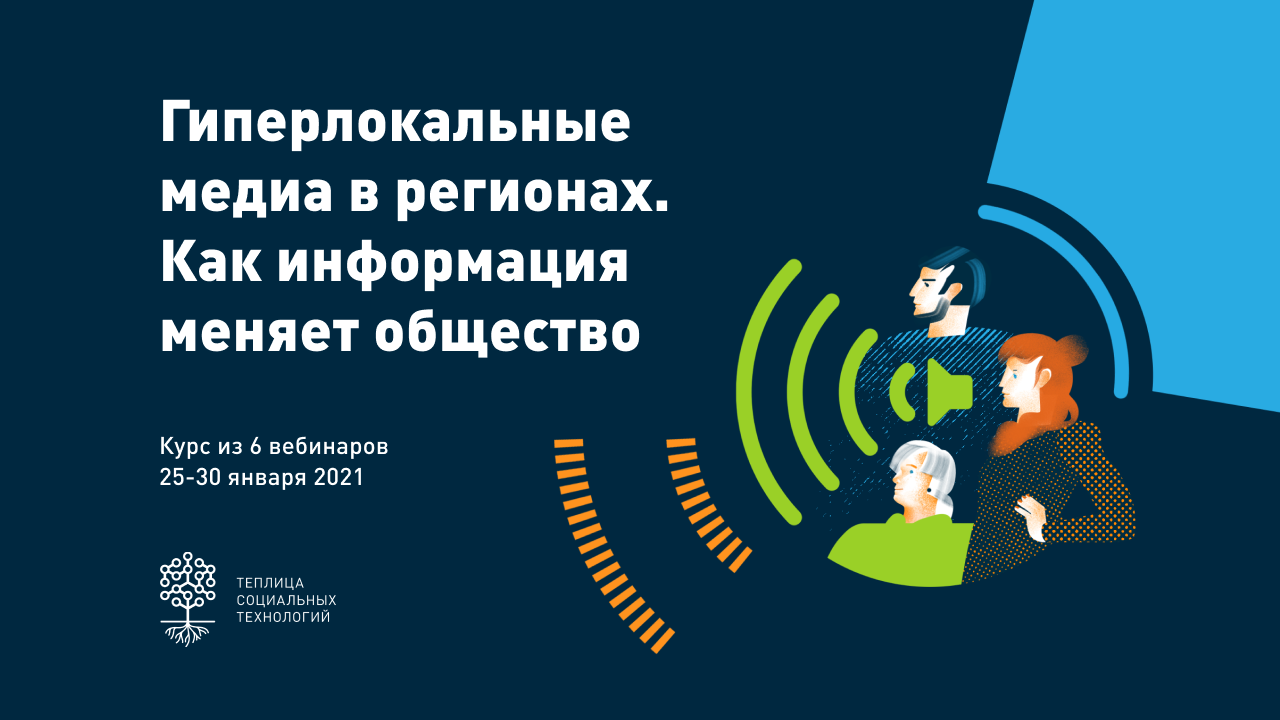 Команда Теплицы социальных технологий приглашает региональных активистов и журналистов принять участие в онлайн-мастерской «Гиперлокальные медиа в регионах. Как информация меняет общество». Мастерская пройдет 25-30 января 2021 года.