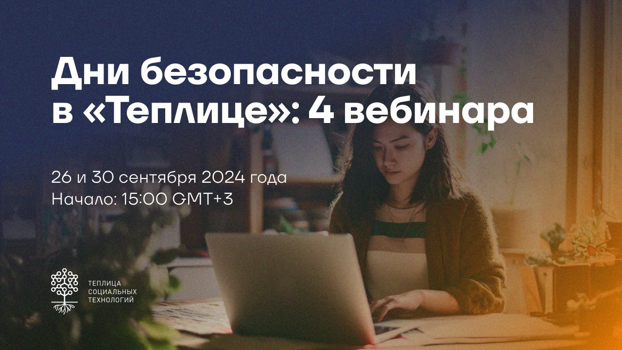 26 и 30 сентября 2024 года Теплица социальных технологий приглашает на дополнительные вебинары в серии «Дней безопасности».
