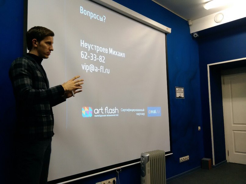 Митап состоялся 29 января в антикафе 4ROOM. Основным выступающим стал Михаил Неустроев, директор студии интернет-маркетинга «АртФлэш», доцент кафедры информатики и кибернетики Байкальского государственного университета экономики и права, кандидат экономических наук.