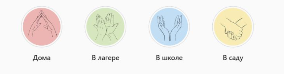 «Лагерь – дай пять, символ дружбы. Детский сад – первая социализация, тоже дружба, самая искренняя. Школа – это знания, это книга. Дом – это крыша дома. Стиль такой контурный. Мне Валя (Валентина Назарова) помогла реализовать, цвета – оттенки их цветов в логотипе». Татьяна Родина