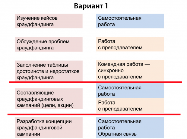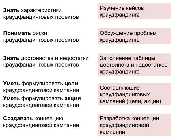 Иван предлагает пройтись по этому алгоритму на примере вымышленного курса по созданию краудфандингового проекта.