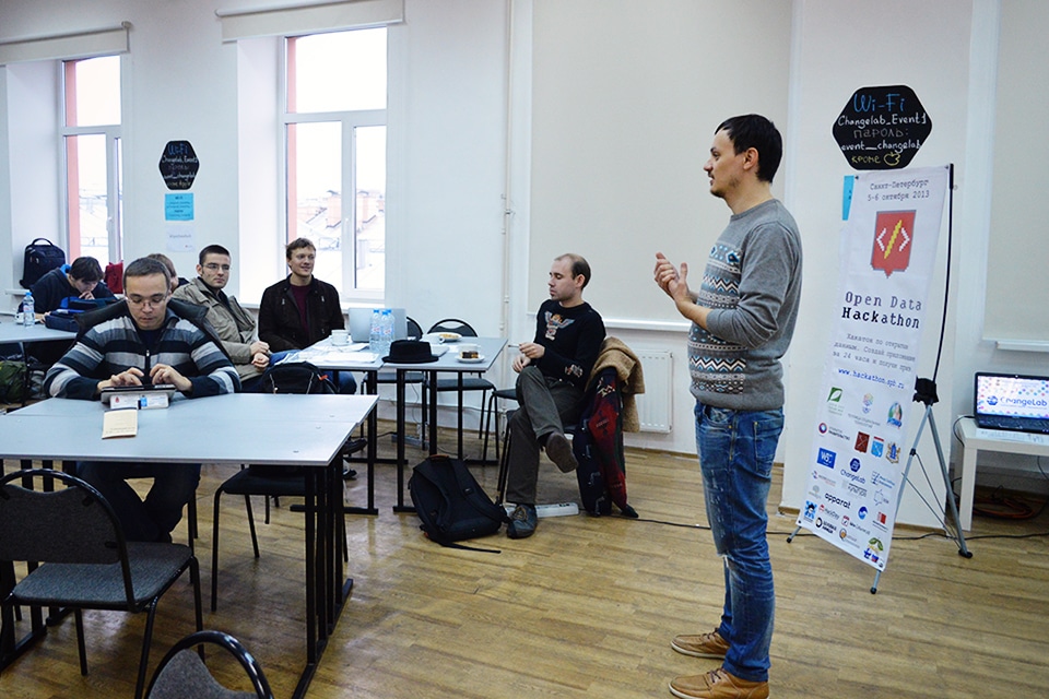 Разработчики и дизайнеры в течение двух дней реализовывали свои идеи по созданию сервисов или мобильных приложений, основанных на открытых данных. Для своих проектов участники использовали данные Foursquare, «Открытого правительства», Госдумы РФ, портала общественного транспорта Санкт-Петербурга и многие другие.