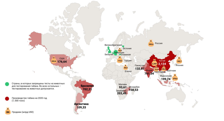 В России, как и в США, тестирование на животных не является обязательным условием для вывода табачной или алкогольной продукции на рынок. Однако законодательного запрета на проведение таких тестов нет. Участникам удалось найти доказательства тестирования табака на животных в медицинских целях в Казанском научном исследовательском институте, Крымском федеральном университете, Тихоокеанском государственном медицинском университете во Владивостоке. Во время работы на хакатоне команда столкнулась с проблемой недостатка данных о тестированиях в России, но они планируют закончить свое исследование и продолжить отправлять официальные запросы в соответствующие организации.