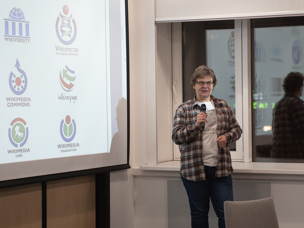 На встрече выступил Дмитрий Ерохин, активный редактор русскоязычной Википедии, член некоммерческого партнерства содействия распространению энциклопедических знаний «Викимедиа РУ» и российский ультрамарафонец. А также Александр Красоткин, администратор Русских Викиновостей, метапедист Русской Википедии, журналист, специалист по авторскому праву.