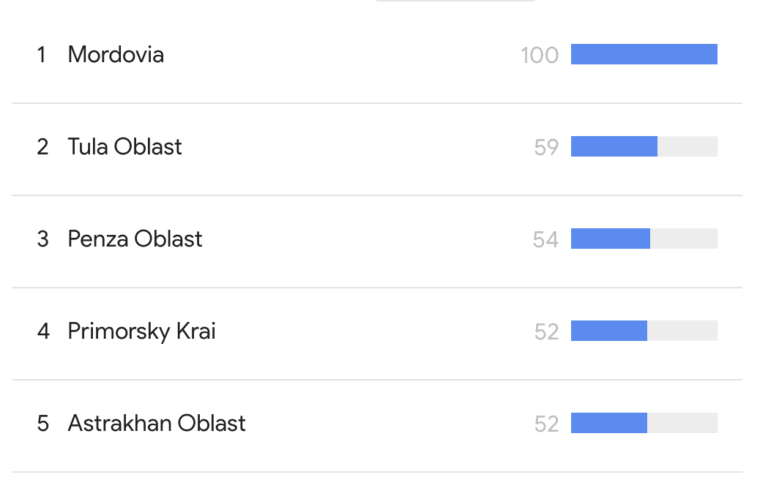 Ниже топ-5 регионов РФ, где люди сейчас чаще всего гуглят «отключение интернета».