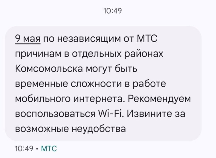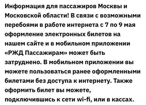 — Непосредственно 9 мая операторы ожидают отключения не только интернета, но и сотовой связи (звонков), как минимум с 9 утра и до 12-13 часов дня.